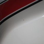 Whenever I see paint (front fender and rear seat cowl) in that condition I see someone who didn’t have much pride of ownership so I start to question everything. There’s no way that front fender never began life on that bike. Christ look at the decal! And the replacement red decal stripe on the tank…