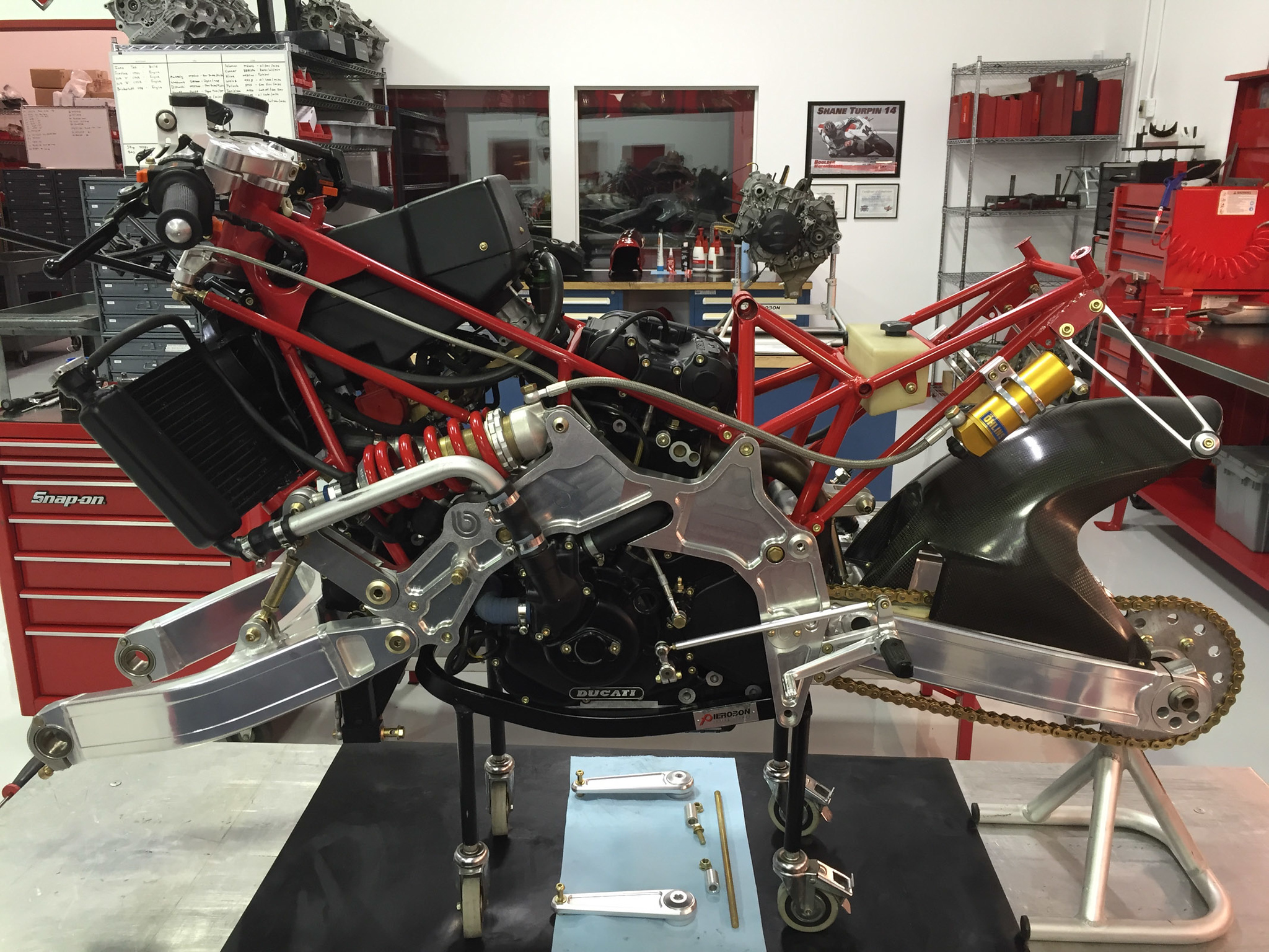 That stand supporting the rear swingarm with the rear wheel removed is the most specialized piece of equipment i have ever seen. Or the stand supporting the bike around the engine. Did this go to George Barber to be serviced?! This is on a level completely alien to my means. Love that this exists.