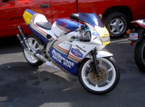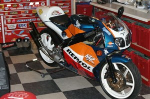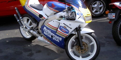 This one has a liberal sprinkling of Tyga dust with the rear sets, pipes, carbon reeds and bodywork. If the Rothmans bodywork is real OEM SP stuff it’s worth a considerable amount, but I’m going to go out on a limb and say that it’s probably not of OEM vintage considering the rest of the bike. A set of any OEM NSR bodywork can bring upwards of $1,000.00 in great shape, but SP bodywork, with the tank…. well, that’s another level all together.