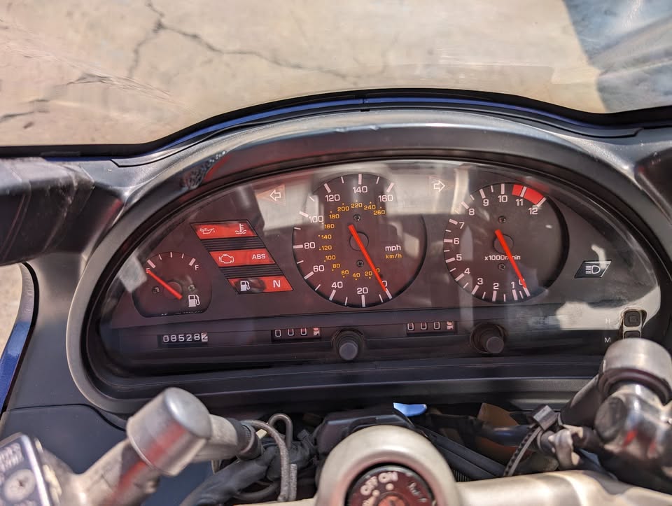 For sale is a very rare GTS 1000, the first mass produced forkless front end design. Only sold in USA 1993-94. This 1994 Yamaha GTS1000 is powered by a fuel-injected 1,002cc DOHC inline-four paired with a five-speed transmission and is finished in metallic blue with silver and black accents. Equipment includes electronic ignition, front and rear anti-lock disc brakes, a single-sided front swingarm with a mono-shock, and 17″ alloy wheels, a four-into-one exhaust system, a black vinyl-upholstered rider seat and passenger pillion, and both center and side stands. Work performed in 2024 includes replacing the battery as well as changing the oil, clutch hydraulic fluid, and brake fluid. This GTS1000 shows 8500 miles. The fully-faired bodywork is finished in metallic blue with silver and black accents and gradient GTS decals. Features include a clear windscreen, Three-spoke 17″ alloy wheels are mounted with 130/60 front and 170/60 rear. Front suspension is provided by a hub-center-steered system derived from James Parker’s Rationally Advanced Design Development (RADD) concept, which utilizes a single-sided swingarm connected to a mono-shock as well as both sides of Yamaha’s Omega Shaped Chassis. Rear suspension consists of a mono-shock connected to the rear swingarm via a rising-rate linkage. Power is sent to the rear wheel through a hydraulically actuated multi-plate wet clutch, a five-speed transmission, and a drive chain. This is a premium example of high quality thinking outside the box engineering. This bike handles amazingly without bump steer in cornering and has plenty of power and stability for 2 up riding. (Left mirror was bumped in our shop and being replaced) We will consider reasonable offers. Bike magazine called it the ‘coolest of rare motorcycles’ ever made.