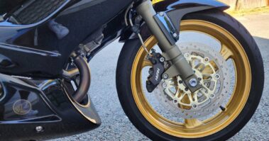 This rare scheme color was made only in 2004. Gorgeous gold wheels with a glossy black fairings. One of the best color combinations.