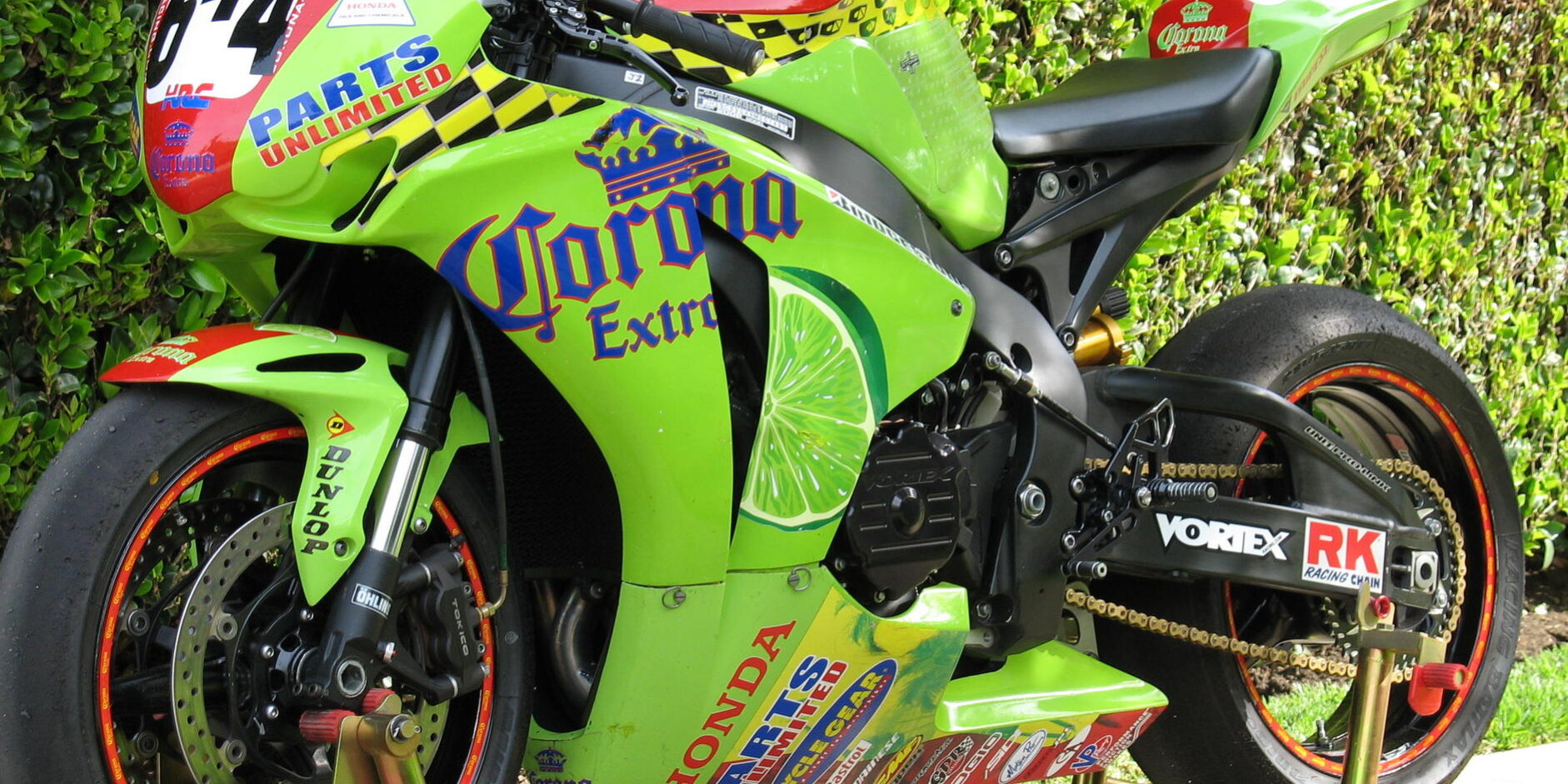 Super Stock Build Motor with a milled head, cam timing and undercut transmission. 350 miles since rebuild. 157 RWHP on SuperFlow with a well worn slick = Approx 180-185 RWHP on DynoJet with a newer DOT. Mapped for Sunoco 260 GTX 98 Octane. HRC ECU Power Commander III Power Commander Quick Shifter Ohlins 25MM Fork Cartridges (1.0 Springs) Ohlins TTX Shock (115 Spring) HRC Headers FMF Full Exhaust Quick Turn Throttle Vortex Rear Sets Vortex Case Cover Vortex Clip-ons Taylor Made Clutch Cover GPR Steering Damper Galfer Steel Braided Lines Front & Back Hotbodies Bodywork Hotbodies Speed Screen Stomp Grip CRG Folding Brake & Clutch Levers Vortex Fuel Cap Fully Safety Wired Spare set of Hotbodies body work in Corona Extra Honda livery included with purchase. Suspension set up for 200 lb rider. Never dropped or crashed.