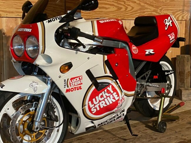 Update 8.28.2021: Sold for $11,500 before we could publish. Congratulations to buyer and seller! -dc Before the days when tobacco logos came in bar code, Kevin Schwantz rode Lucky’s RG500 to a MotoGP championship and two runner-ups. Apparently a home-grown commemorative, today’s GSX-R has a bunch of nice mods to an excellent year. 1990 Suzuki…