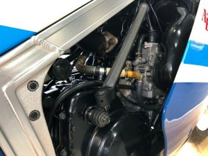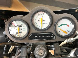 With just enough photos to wet a buyer’s whistle, the owner can expect a message and visit from any really interested party. Still this RG looks very stock and undamaged, with mostly nice finishes left on the alloys and paint. Hyperbolic comments and specs ( reviewed top speed 147 mph, wet weight 386 lbs. ) from the eBay auction: