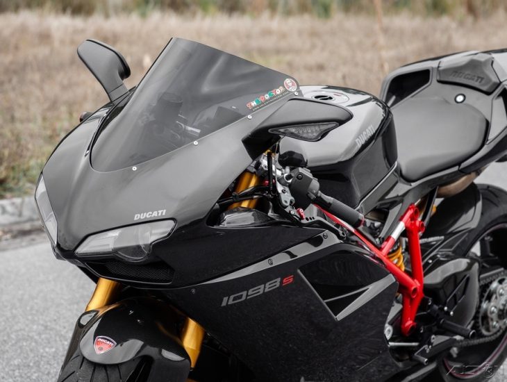 (With thanks to George Thorogood) – Ducati returned their sportbikes to side-by-side headlights for 2007, and Troy Bayliss brought home the WSBK title aboard a 1098 F08. Even though it’s not rosso, the way this 1098S is constructed, updated, and photographed imparts the sport’s aggressive essence.