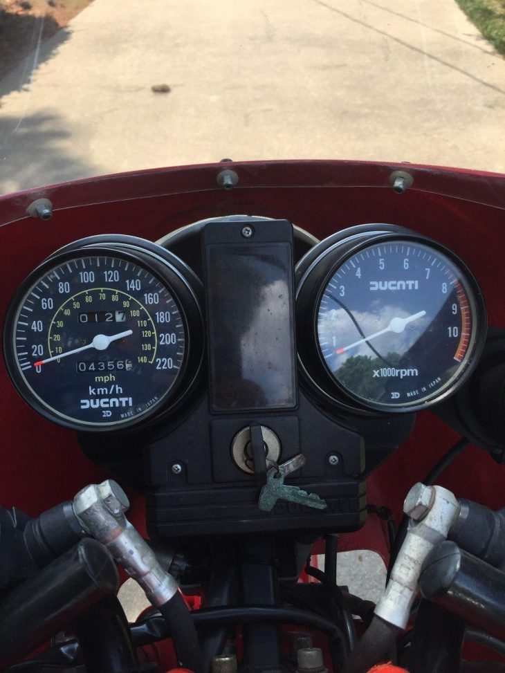 Apparently un-restored, this Mille still has the original rubber, and everything else. Wafer-thin fairings look excellent, as do the option Conti mufflers. The Texas owner says this in the eBay auction: