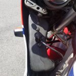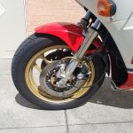 The good side, this bike looks to be in decent condition for the age. There exists the requisite corrosion that one would expect from a Japanese import; this is common to any bike that lives near the seaboard. The plastics look great (with a possible crack on the upper right side panel and a missing fastener which could spell a broken tab), as does the paint and seat. The stock pipes look a bit peppered (or possibly just dirty), but nothing extreme to my eye. Even the wheels look decent, and the bike comes shod with new tires.
