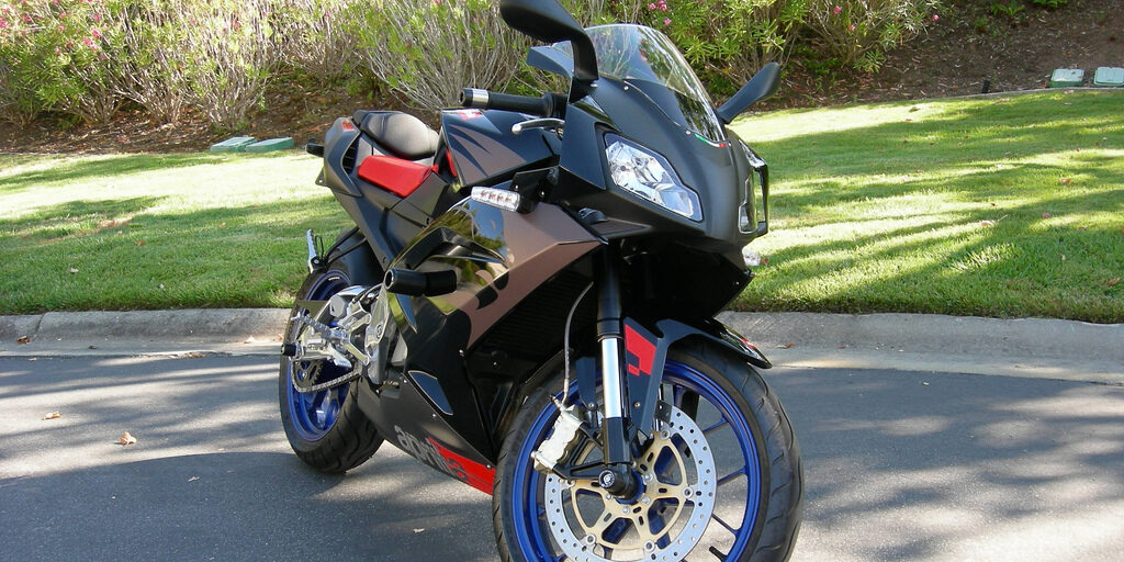 As you may be aware, Aprilia brought a semi-street-legal (headlights, tail lights, but incorrect wiring harness and off-road use only title) RS125 to the U.S. for 2009, however Europe and the rest of the world has been enjoying 125’s for years. Offered for sale in Redwood City, California is a titled and plated street legal 2006 European market Aprilia RS125. This example shows only 305 original miles and looks to be in excellent condition. The asking price of $8500 may be a bit high as supposedly plated ’09 RS125’s have been advertised at around $6-6.5k ($5449 MSRP for the non-street legal version). However, this is a legitimately plated bike and quite possibly the only plated 2006 (there may be a couple more) in the U.S.; it comes with desirable performance accessories, spares, and all the original parts. The 2006MY is the first for the latest iteration of the RS125 that includes the 2009’s. If seriously interested, money may talk and a sold price could be well under the asking, but don’t expect it to be under the going price of the ’09’s. Is it sad that we lust over what is just an entry level bike in Europe? See the Craigslist ad here. And the hi-res Flickr photos here.