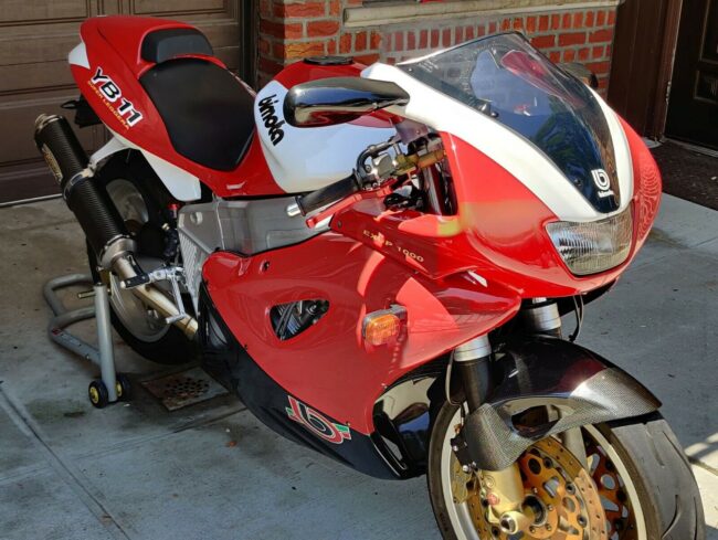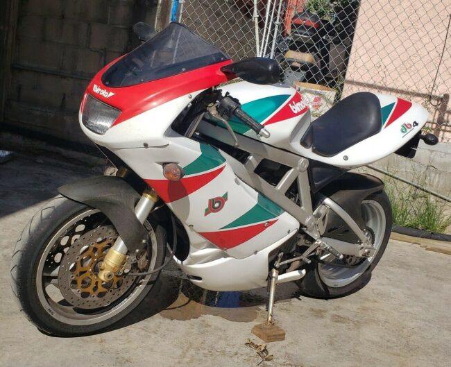 Bimota’s fourth Ducati used the tried-and-true ( if not overpowering ) 904cc desmodue, but was a lightweight handler. This owner hasn’t belabored the cosmetics, but from the looks of the tires has used it as intended – on the wickedly technical Palomar Mountain Loop. 1999 Bimota DB4 Tri-Colore for sale on eBay The DB4 design…
