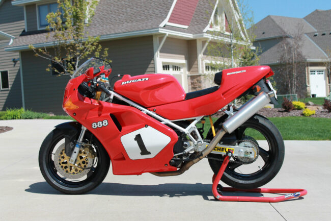 Here is a blast from RSBFS founder Dan Crouch’s past. Last seen in July of 2008 on the Dan Crouch Blog (a predecessor of RSBFS) this is a 1993 Ducati 888 SPO with just 713 miles since new. The last of the 851/888 line up before the introduction of the legendary 916 platform, the 888…