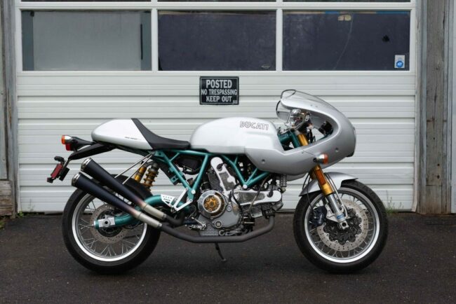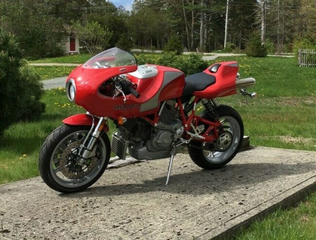 Ducati stylists must’ve had a poster of the 1973 750 Sport on the wall when they were preparing the Sport Classic 1000 for production. Today’s example shares the 1973 color, low bars, unfaired monoposto formula, but with a generation’s newer engine and components. 2006 Ducati Sport Classic 1000 for sale on eBay Though the bevel…
