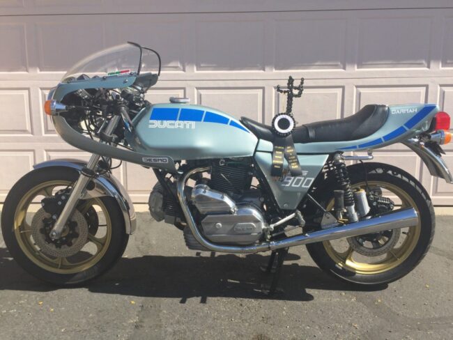 Here is a recent restoration of a venerable classic, the Ducati 900 SS Darmah. Apparently reaching internationally for parts and services, Italian Iron Classics of Tucson presents a new-looking and prize winning 1981 machine. 1981 Ducati 900 SS Darmah for sale on eBay Originally designed in the early 1970’s, the bevel-drive desmo twin went through…