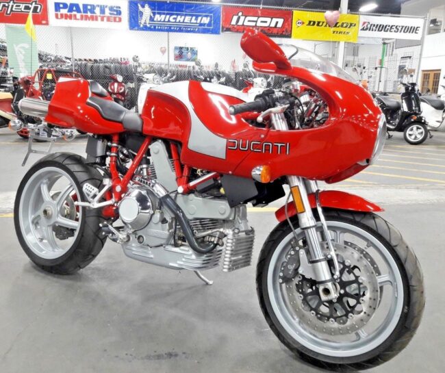 Continuing our recent trend featuring flawed homologation specials comes this Ducati 916 SPS that is, quite tragically, missing its original engine. A truly original example would be pretty pricey, so that missing engine means it might be possible to pick this one up for a relative song. And that’s no bad thing because there’s more…