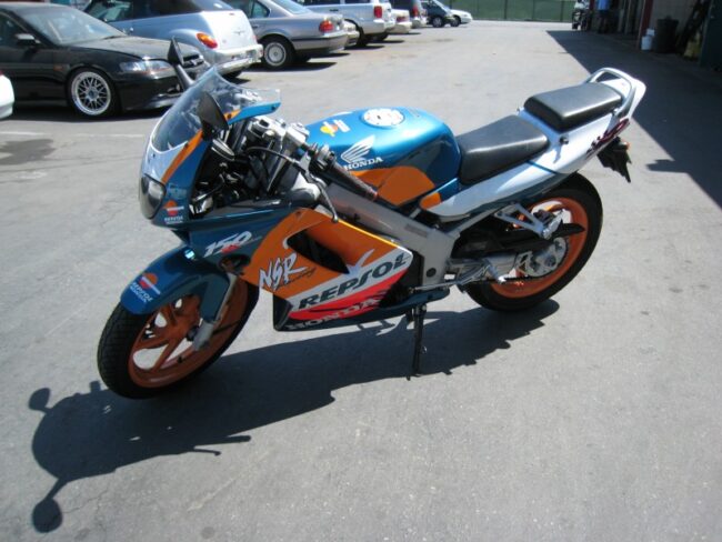 I didn’t even know they made an NSR150, but here’s a pretty clean looking bike in Orange County for $5100. quote from seller’s Craigslist ad: Honda Repsol NSR 150 SP Pro Arm This motorcycle is currently CA Registered through 2009. There are about 35,000km on the clock (21,750mi). It was imported originally from Thailand. The…