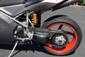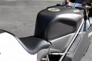 Has some minor nicks and scratches here and there, typical for a 15 years old driver but the bike runs and drives perfect. 20,350 well maintained miles, most of them highway. I have all stock parts and the original Ducati Workshop Manual. I also have an extra coolant tank made of aluminum and a complete oil cooler set that’s used on the 916 model.