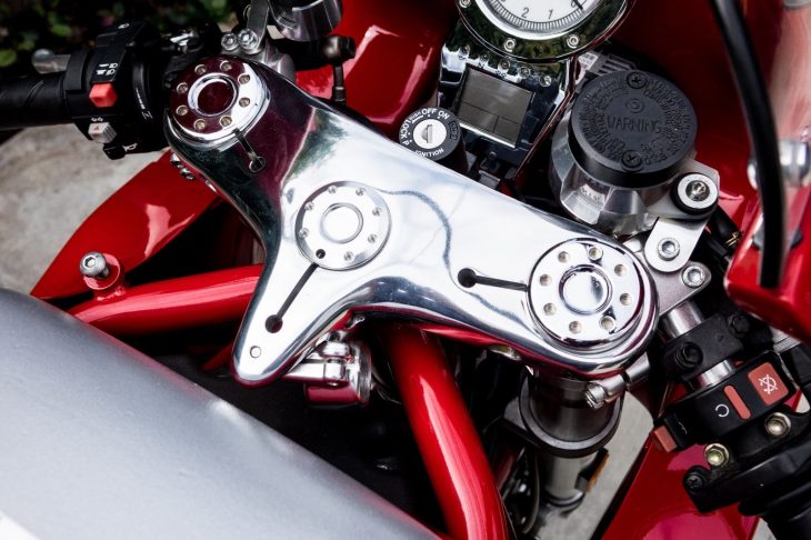 Obviously, looking at the heart of the MH900e, you could be forgiven for thinking it’s an actual motorcycle: that elegant tubular trellis frame surrounds one of the great street powerplants of the modern era: Ducati’s air-cooled, two-valve v-twin. It’s no powerhouse, with just 75hp at the rear wheel, but makes plenty of torque and sounds terrific, more emotive than Ducati’s four-valve, liquid-cooled engines. The suspension is top-shelf and the overall package is lightweight so the bike has excellent handling, should you ever decide to venture out on a racetrack or backroad on one.
