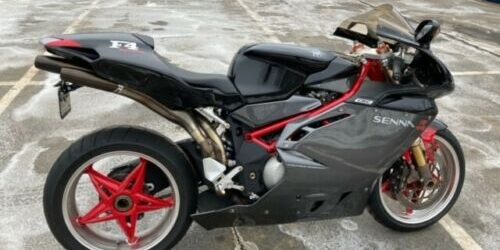 The F4 hit the press in 1998 as a 1999 model. Displacing 750cc (749.5cc to be exact) and sporting some novel engineering in the heads and intake runners (courtesy of Ferrari F1 involvement), the original engine developed 126 HP and was utilized in the Oro, the S, the 1+1 two-seater, and the Neiman Marcus Edition. It was not until 2002 that the EVO 2 spec engine was introduced – itself a product of a delayed SPR project – bumping power up to 137 HP, but at a lower redline. The Senna model was based on the EVO 2 spec, but was further blueprinted to allow for the full use of revs and then some: all the way to nearly 14,000 RPM. Festooned with the usual carbon fiber farkles, the black/gray/red Senna livery and unique number tag on the headstock, the Senna 750 was limited to 300 units worldwide.
