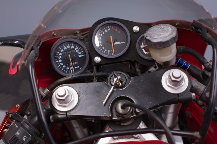 The bike seems honestly presented and is in good, if not perfectly original condition. The levers, grips, rearstand spools, and brake lines aren’t stock and the color choices aren’t particularly subtle, but that’s fine, since you’d end up replacing them anyway if you’re going to ride it, or if you’re restoring it. The minor cosmetic flaws should be easily rectified without having to tear the bike down, and it would make a great, usable example.