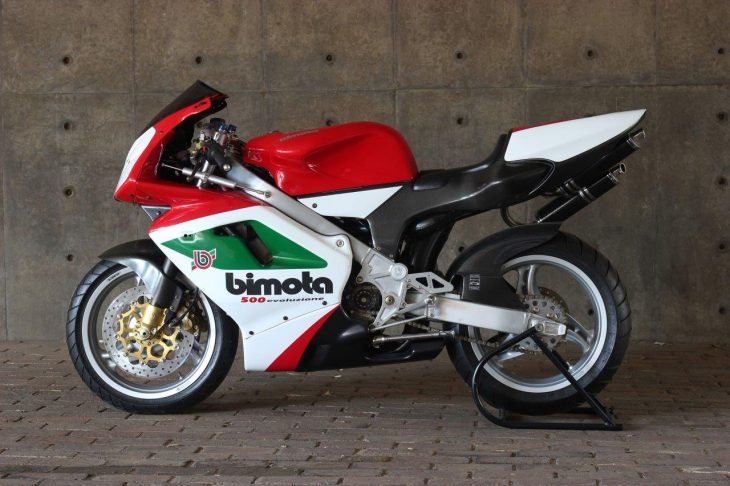What could have been the Bimota BB-2 was called the V-Due and had Bimota’s own engine, a modern two-stroke, fuel-injected 500cc twin. However the army of engineers Bimota didn’t have allowed the project to proceed with a faulty crankcase and caused a recall which virtually bankrupted the company. In the throes of it the factory developed a race series and released a number of machines in racing trim, as the Trofeo, and then as customer Evoluzione Corsa machines, of which this example is presented with zero miles.