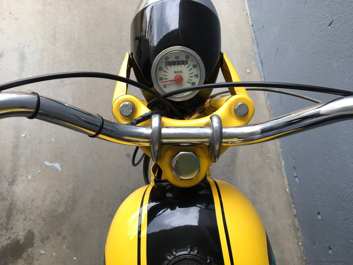 Lightweight and perfectly aimed for the burgeoning American scrambler market, the Benelli Leoncino is a quintessential Italian bike at its best, with a lightweight body and straightforward engineering offering a 49cc two-stroke that was thoroughly amiable. The “Hunters Special”, released in 1968, was a limited production model to try and endear the bike to Americans. Only 50 are believed to have ever been sold.