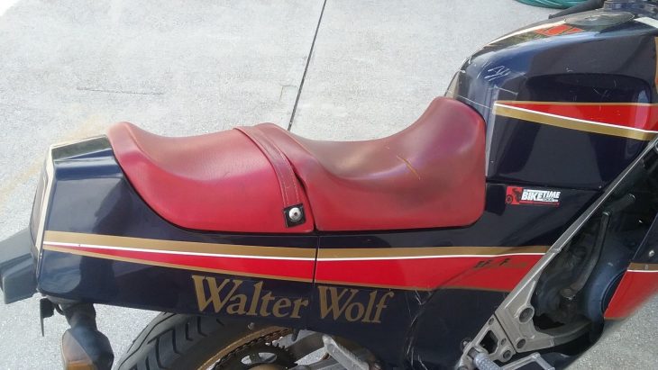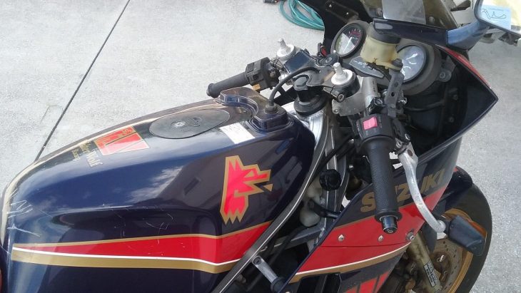 I believe some markets made do with stock Suzuki gauge faces, but the blue and red Walter Wolf items are a good indicator that this is the real thing. Obviously, this one will need some refurbishment, but nothing outside the ordinary for a bike of this age. The cosmetics aren’t perfect, but the bike looks complete, and is claimed to be very original which counts for much among collectors. And if you’re not into math, that kilometers reading on the odometer means the bike has just 5,673 miles on it. With a Buy It Now price of $4,750 the seller seems to be realistic about what this bike is worth, considering the worn cosmetics and non-running condition, so if you want an 80s two-stroke sportbike and your finances won’t stretch to an RG500, this might scratch that itch.
