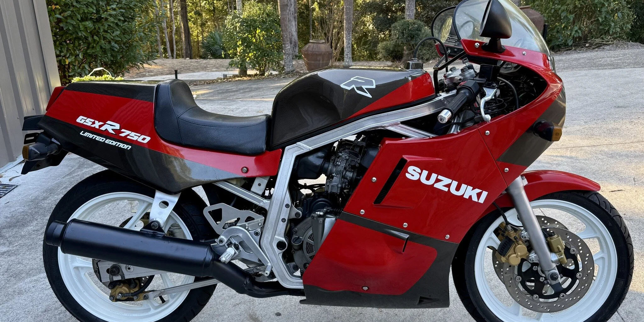 This example of Suzuki’s GSX-R750 Limited Edition is available from Brad’s Vintage Cycles in Queensland, Australia and may be a bit out of the way for most of our readers, but certainly is worth a look, as these don’t come up for sale very often. The bike currently has the equivalent of just over 20,000 miles on it, and appears to be in excellent condition, with recent maintenance and repairs to make it fully roadworthy and more than just a display piece.