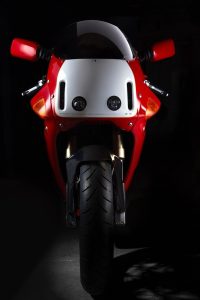 The 888 was designed by Pierre Terblanche and a light update to the muscular 851, Ducati’s first desmoquattro. American Doug Polen had won the 1991 Superbike World Championship on an uprated 851, and the 888 homolagated the changes for the next year, returning with the #1 plate. This 888 has been treated to a silky resto-mod and a day in the photo studio.