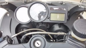 BMW tweaked the 1157cc engine, tilted forward 55 degrees and running 13:0 compression, it’s good for 167 hp. The angle led to a longer bike, but Duolever front end and Paralever rear keep handling sharp for a heavyweight. The beginning of the electronic era, the K1200S had ABS, electronically adjustable suspension ( ESA ) and a pushbutton windscreen, all optional along with the rider information display. The 4-2-1 exhaust appears under the full fairing and enters a right-side muffler, this time updated to Two-Brothers flat-weave carbon fiber.