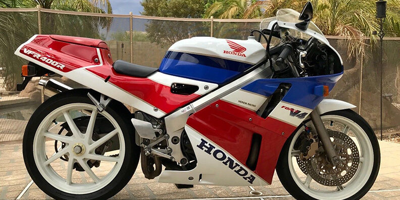 Up for auction is a beautiful 1989 Honda VFR400 model NC30. Hands down the most desirable color scheme. Gas tank is mint condition with zero rust inside the tank. The bike was legally imported into the United States. The bike has a clear Arizona US title with the proper 11 digit VIN number (title and frame number match). Bike starts right up runs perfect with no oil leaks. The bike is all original and is a true pleasure to ride pulling through all gears very hard. With a 14,000k rpm red line the bike will leave you with a smile on your face for days. Please view all the images as there are few scratches and scuff’s throughout the bike. Also please keep in mind that this is all OEM factory Honda fairings and not the cheaper aftermarket stuff.The bike is all sock minus the stainless steel brake lines. All the electronics including horn, turn signals, high / low beam, and Killswitch all work as they should. This bike is being sold locally and I encourage all bidders to come down and view the bike in person or send a local mechanic on your behalf to view for you. Rare vintage Japanese bikes don’t come up often and this is a beautiful example with no disappointment.