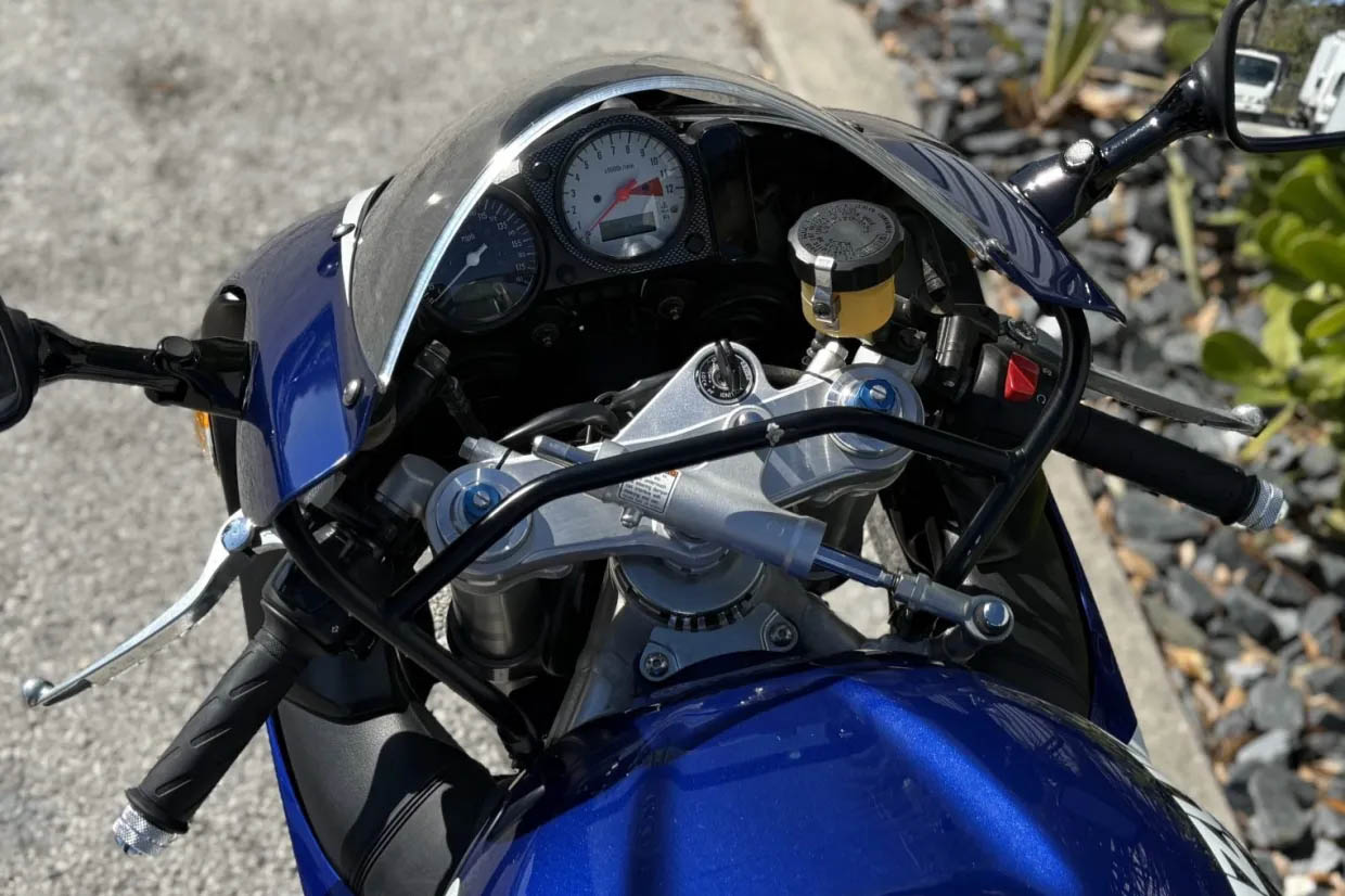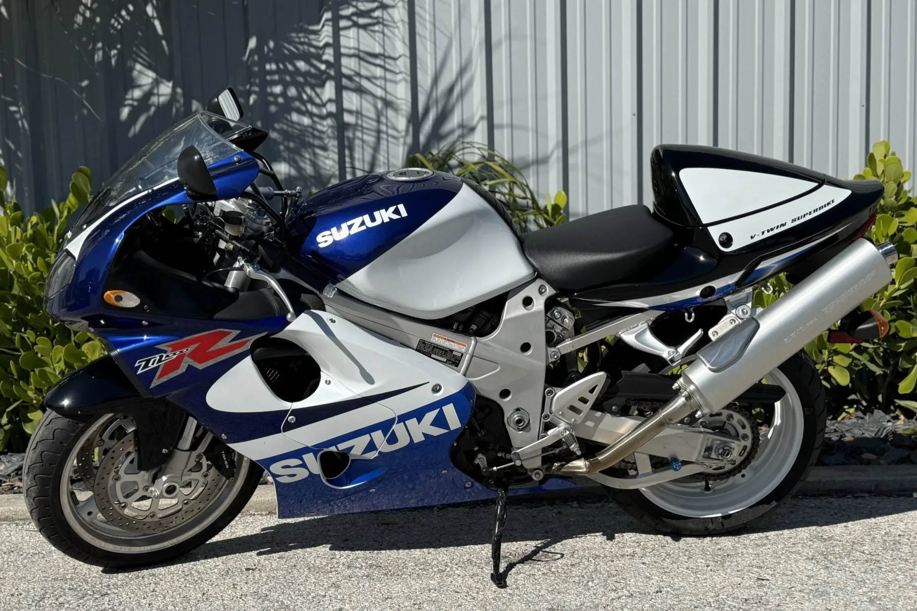 This 2001 Suzuki TL1000R remained with its previous owner for 22 years before it was acquired by the selling dealer in September 2025. Finished in blue, white, and black, the motorcycle is powered by a liquid-cooled 996ci DOHC V-twin paired with a six-speed transmission. Equipment includes Suzuki Ram Air Direct (SRAD) induction, electronic fuel injection, a dual-muffler exhaust system, an aluminum frame and braced aluminum swingarm, adjustable suspension, triple disc brakes, 17″ alloy wheels, a clear windscreen, black two-up seating, a removable tail cowl, and a side stand. Reported work in 2025 consisted of changing the oil, replacing the battery, and servicing the fuel injection. This TL1000R has 2,800 miles and is offered at no reserve with a clean Florida title.