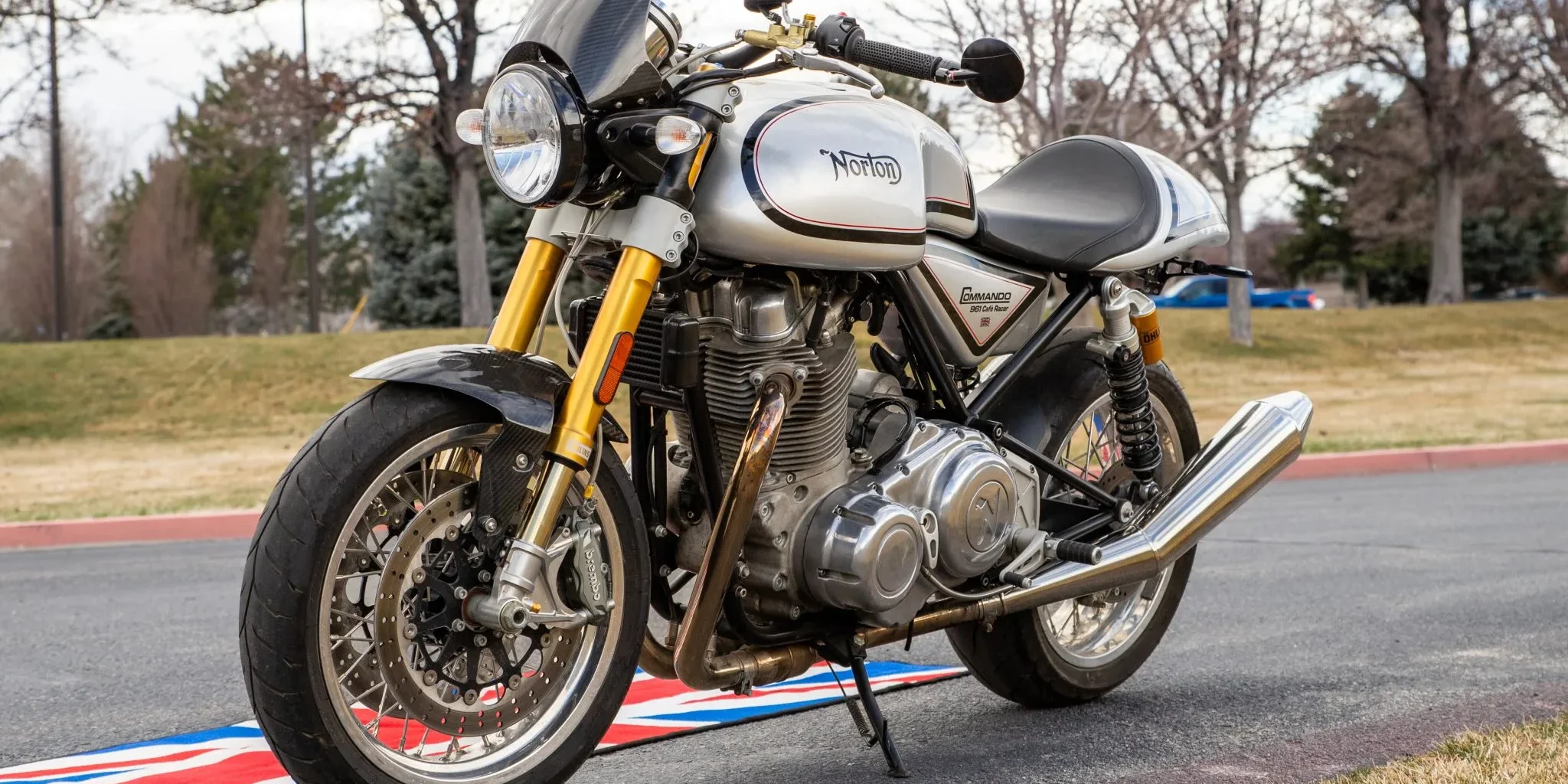 The 2014 Norton Commando 961 Cafe Racer is finished in silver with black pinstripes and powered by a 961cc OHV parallel twin mated to a five-speed transmission. Equipment includes electronic fuel injection, a hydraulically actuated clutch, a dual exhaust system, Rizoma bar-end mirrors, carbon-fiber trim, adjustable Öhlins suspension, triple Brembo disc brakes, a solo saddle, a molded cafe-style tail section, 17″ wire-spoke wheels with alloy rims, and a solo saddle with a rear cowl. This 961 Cafe Racer was acquired by the seller on BaT in January 2023 and is now offered at no reserve with a clean Utah title in the name of the seller’s business.