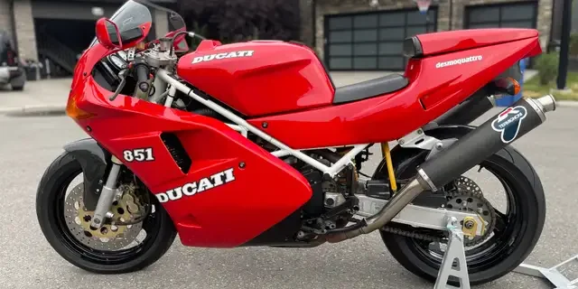 Near Toronto, Canada, just above the Great Lake of Ontario, comes this pretty Italian supermodel. The 851 is fabled for bringing together the trifecta of liquid cooling, fuel injection and four-valve desmo heads together in one fantastic package. So good was this bike that it set Ducati on a dominant streak in the WSBK racing series. It also created lust in the hearts of street riders everywhere, which Ducati catered to with the introduction of several road variants. Today’s example is a Strada, the base-spec, two seater that is bound to turn heads wherever it goes.