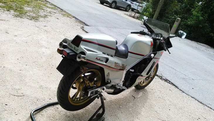 If memory serves, this is only the second 1987 Suzuki RG400 Walter Wolf we have featured with silver livery instead of the much more common navy blue. Further adding to the intrigue is this bike’s 400cc displacement, as we much more often feature its bigger 500cc brother.