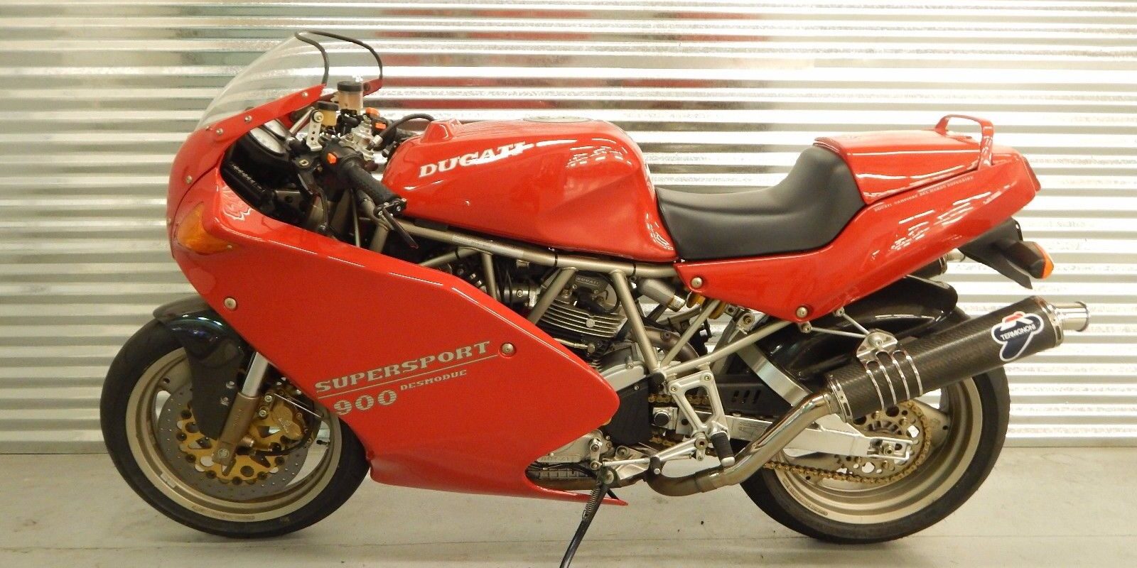 Super Clean and well maintained 1995 Ducati 900 SuperSport SP #321, Termignoni Slip On Exhaust, Carbon Fiber Front Fender, Rear Fender Hugger, Belt Covers and Clutch Cover, New Dunlop Sportmax Q3’s, frsh oil and Brake and Clutch Flush all services are current. This is an 8.5 out of 10.