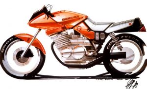 Designer Hans Muth spent the 1970’s bringing aerodynamics and attitude to BMW’s R90S and R100RS, and left to form Target Design with partners Hans-Georg Kasten and Jan Fellstrom. The designers’ first commissions were for Suzuki, the GS550M and GSX1100S. The 1100 brought 4 valves per cylinder and 111 hp to the party, and the Katana’s wedge fairing made 137 mph possible. Changes for 1983 included forged connecting rods and progressive rear springs to accompany the anti-dive forks. Competition formulas of the day didn’t have a place for 1100’s, but the Katanas sold well on Suzuki’s other successes, and the model name was used until the mid-2000’s in the U.S.
