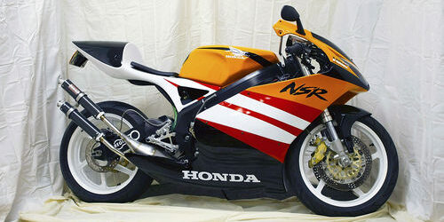 This bike started off as a very used stock NSR250SE MC21. It is now the beautiful bike in the photos. Kept in temperature controlled garage. Only about 8 miles on it after rebuild and paint.Body, rearsets, expansion chambers are TYGA. Front end and triple clamp is 1993 Honda RS250. Powder coated front Marchesini magnesium rim. Full Brembo. Iron rotors. All new bearings. Reduced steering lock from stock due to reduced triple clamp offset.