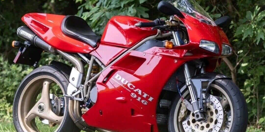 There are many that claim that the oval-piston Honda NR750 pitched the concept of under seat high exhaust and the single sided swingarm, but there is no argument that – regardless of origin – the Ducati 916 has cemented ownership of the classic sport bike silhouette. And while “Ride Red” has long been a slogan of Honda, it can be argued that a certain Italian brand has owned the color since the launch of this model.