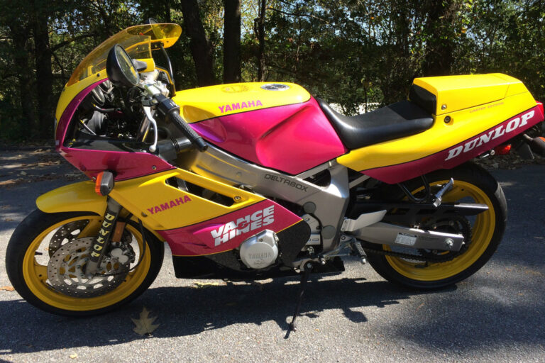 1992 Yamaha FZR600 Vance & Hines Edition Miles: 64 Single Family Owned Clean Idaho Title Bid at post: $13,000 Auction ends: Dec 10 No Reserve 1992 Yamaha FZR600 for sale on BaT Straight from BaT This 1992 Yamaha FZR600 is one of a reported 636 Vance & Hines Edition motorcycles produced, and this example was…