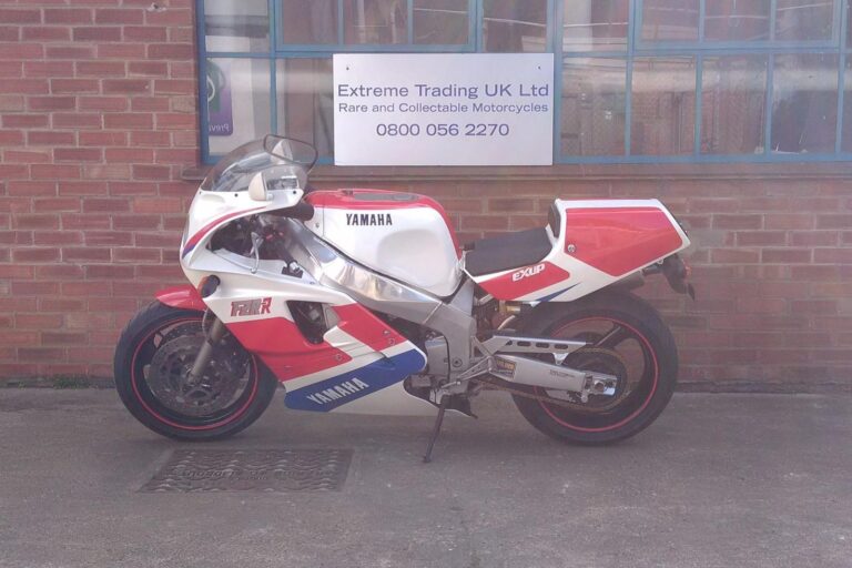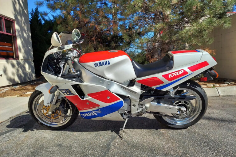 Located in Russell, Illinois is a 1987 Yamaha FZR750R. This example shows only 2,596 original miles and looks to be in excellent condition with a clean title. Examine this homologation special on eBay here. Also, located in Austin, Texas is another 1987 FZR750R. This example has less than 8k miles, been kept in a climate…