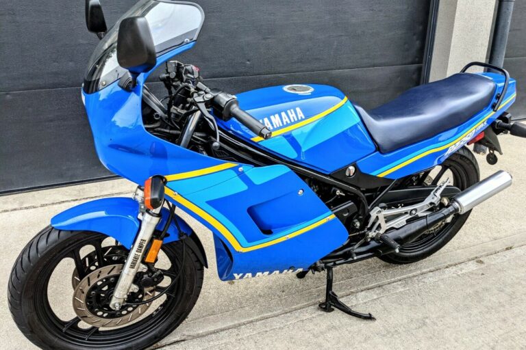 For you lucky northern residents we have a Canadian market 1989 Yamaha RZ350 located in Sherbrooke, Quebec, Canada. The seller claims that this bike has an unbelievable (it doesn’t look like it in the pictures) 29,000km (16k mi). Shown in an excellent looking blue and yellow paint scheme, this bike looks showroom new–either it is,…