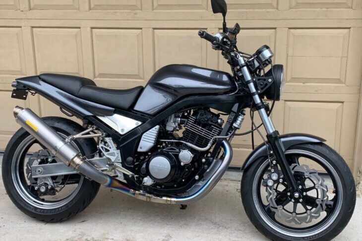 Yet again, the Bay Area produces another rare and titled 2 stroke sportbike from the 90’s. Feast your eyes on this 1992 Yamaha TZR250 with plates in San Rafael for $6500: quote from seller’s Craigslist posting: 1992 Yamaha TZR 250 (model 3XV1) with registered CA license plate. I also have lots of spares for this…