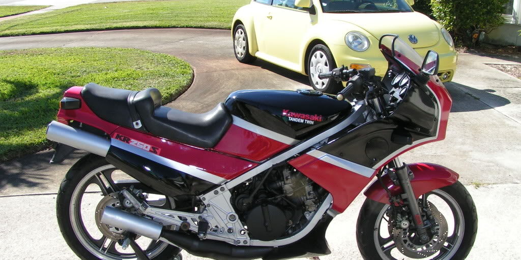 1985 KAWASAKI KR250 KR 250-S, 100 percent stock and complete, 2 two Stroke 2 cylinder bike, water cooled, tandem twin 2 crankshafts with 2 rotary valve induction, 2 power valve, 2 reed valve, very rare and collectable. Very few people looking for one of these because nobody has ever heard of this model. Not only is this a rare bike, but it’s the even more rare power valve version also. Never sold in the USA, the bike was imported from Japan. Very exotic bike, only bike similar to it is the Suzuki RG500 gamma, which go for 15 to 30K, is like that engine, but cut in half.